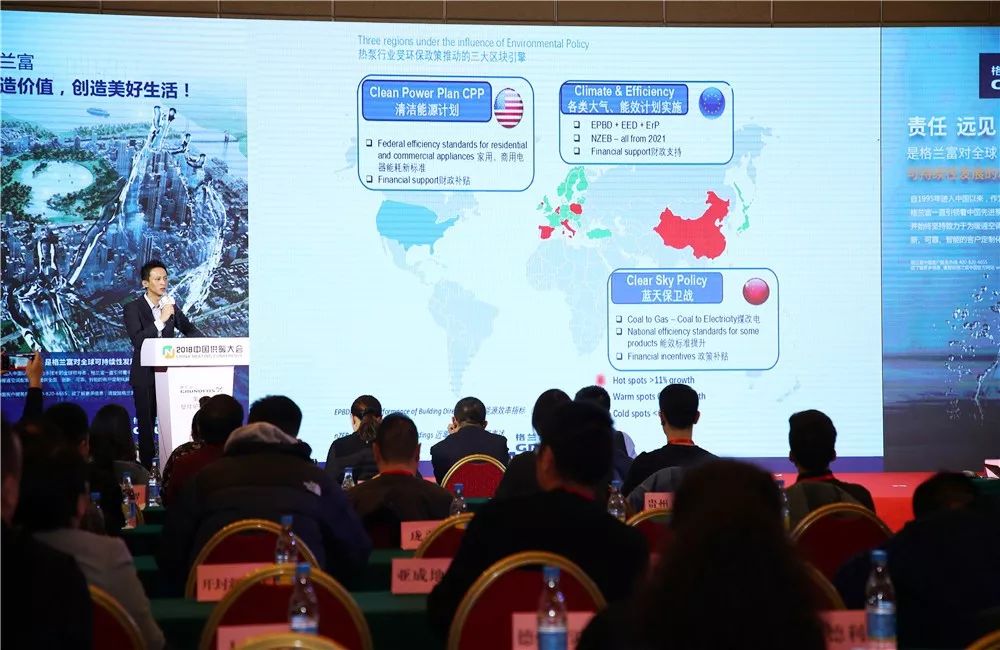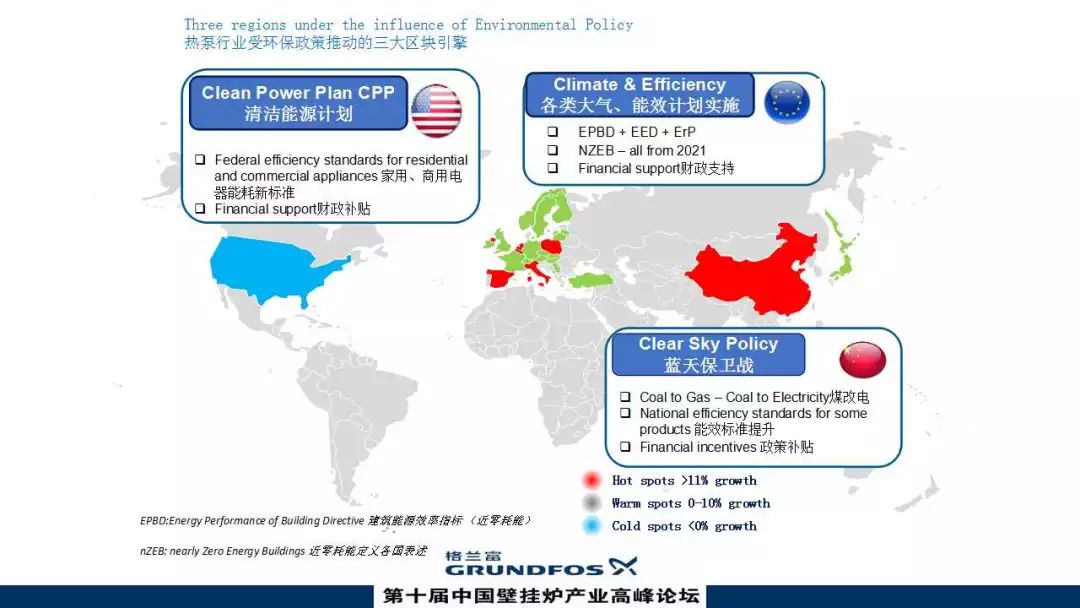 談到區域市場和熱泵行業的增速,全球有三大區塊受到推動,從左到右分別是美國、歐洲、中國。