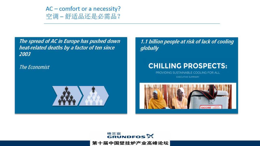 這是根據《經濟學人》的統計,該統計是實地調研得出的結論。這里傳遞的信息是西方國家受熱浪影響導致的死亡率,通過他們的統計調研,全球受熱浪影響的人數有11億,如果大規模推行家用空調死亡率可以降低90%。所以,空調到底是舒適品還是必需品?