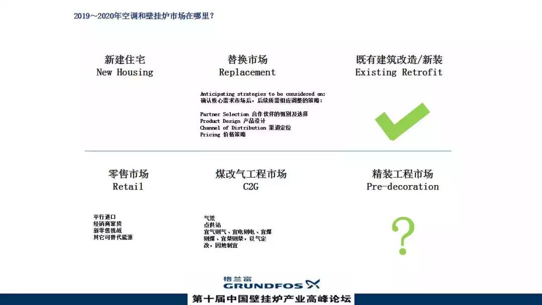 我們采訪了2018年空調盈利很好的企業,橫線上是空調,橫線下是燃氣壁掛爐。有一個共同點,他們都認為新建住宅在全球市場沒有太多空間,尤其是經濟發達的地區。
